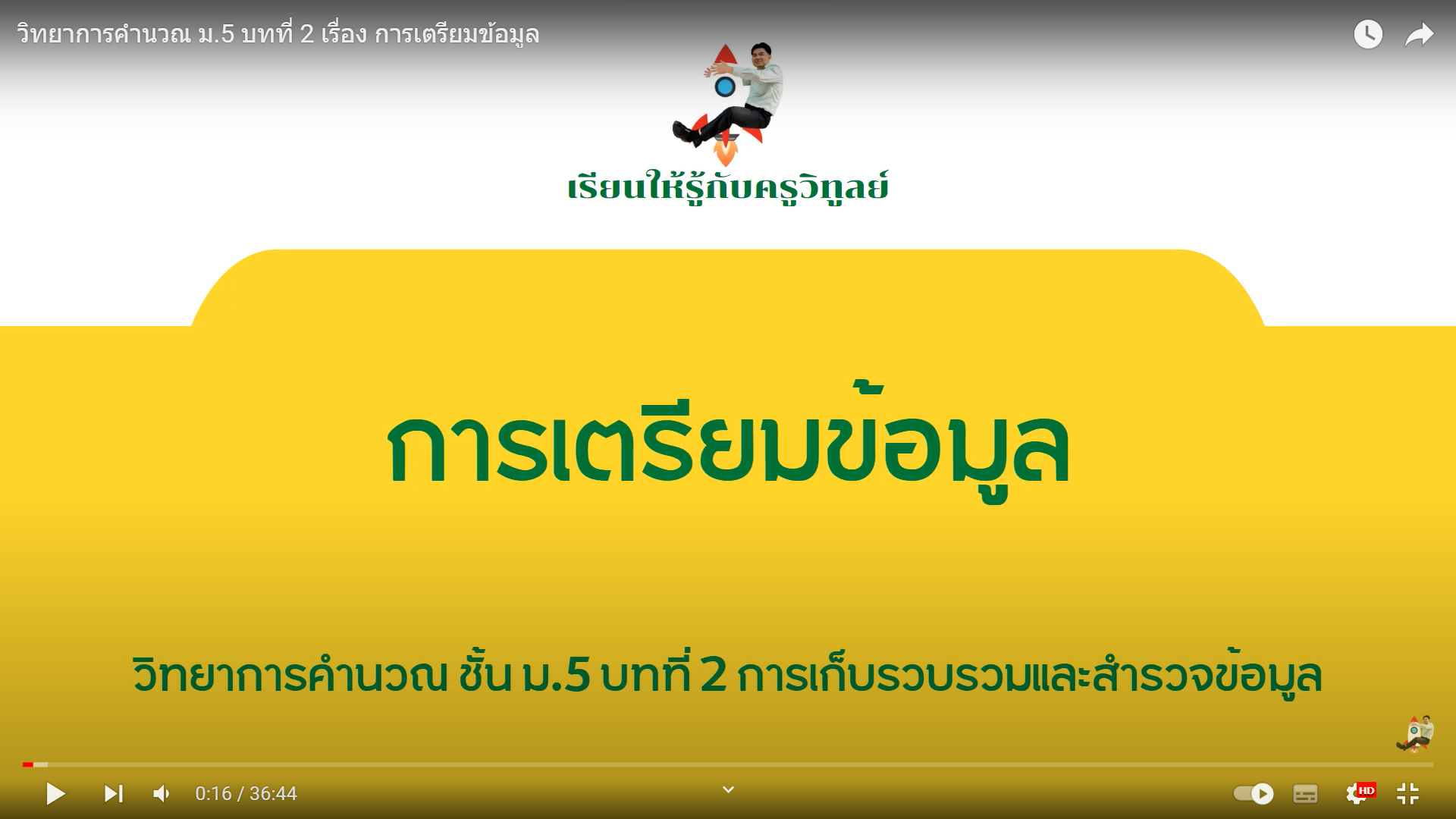 Youtube "วิทยาการคำนวณ ม.5 บทที่ 2 เรื่อง การเตรียมข้อมูล"