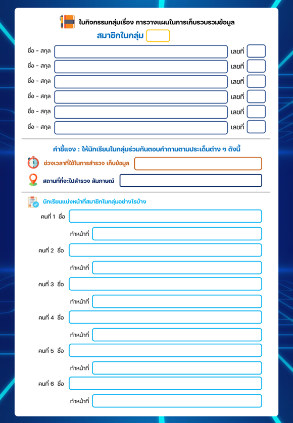 ใบกิจกรรมกลุ่มเรื่อง การวางแผนในการเก็บรวบรวมข้อมูล
